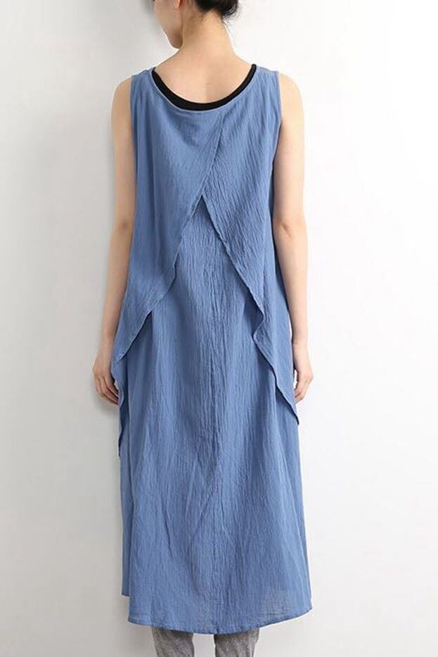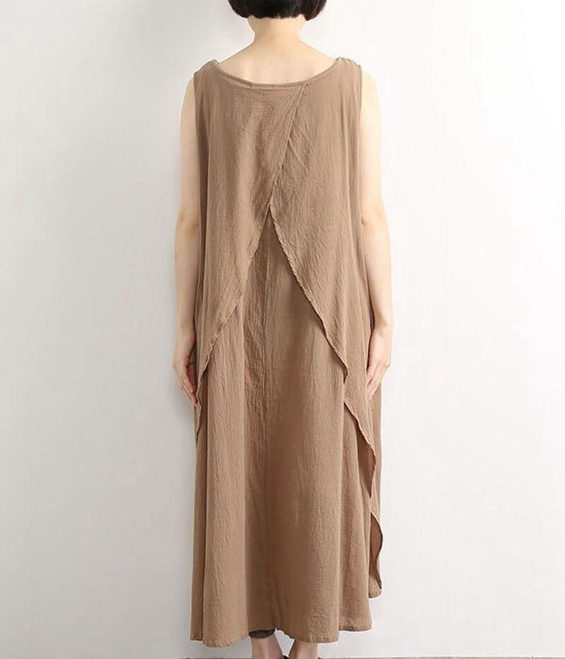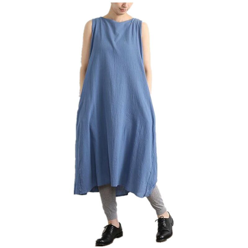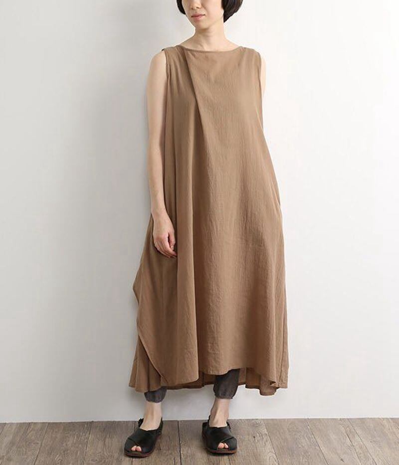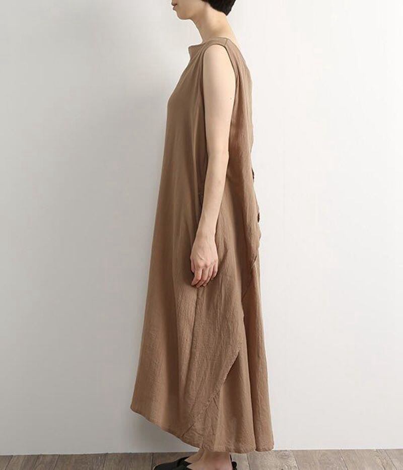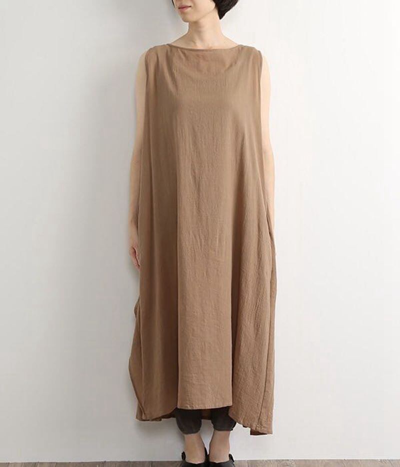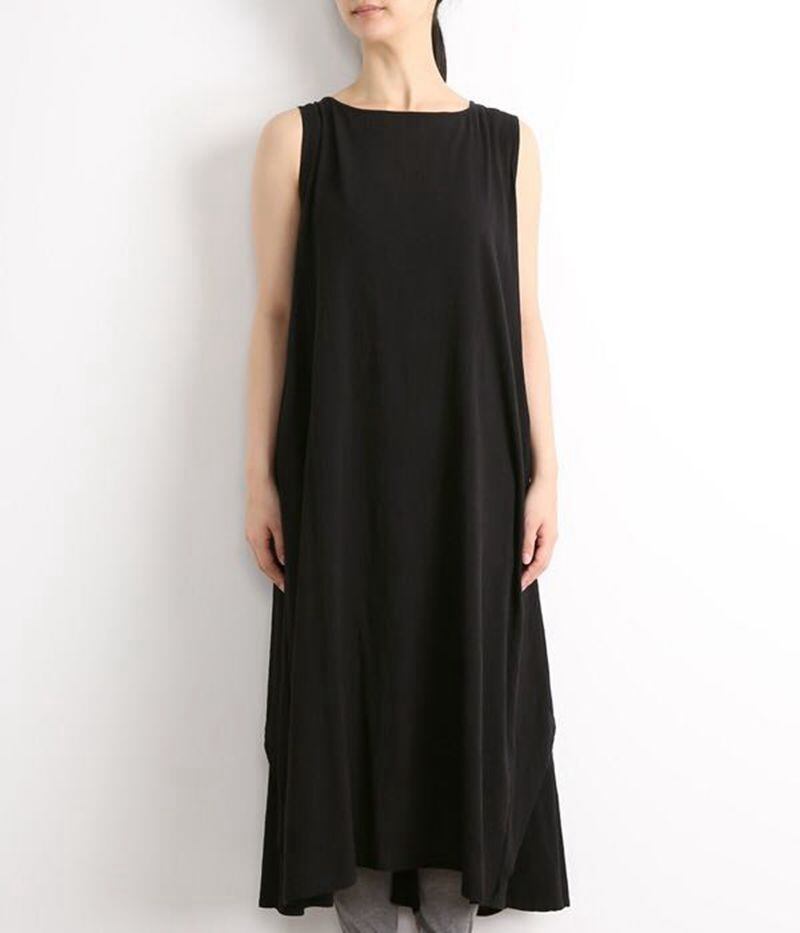 ワンピース ノースリーブ ラウンドネック ラクラク 楽ちん リラックス ミディアム丈 ゆったりウエスト