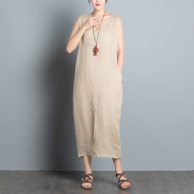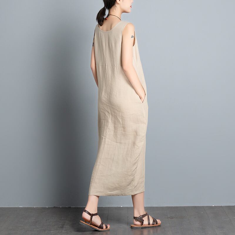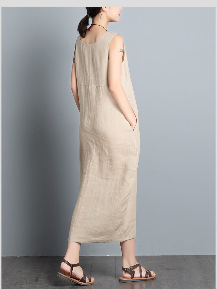 ワンピース ストラップ ゆったり ノースリーブ ミディアム ベージュ コットン お出かけ 気軽さ