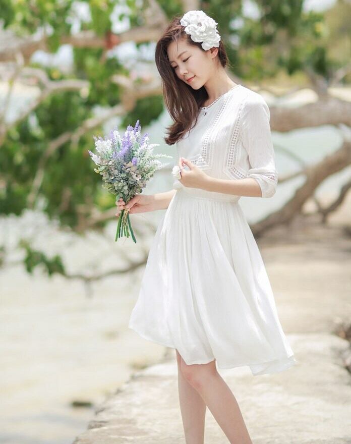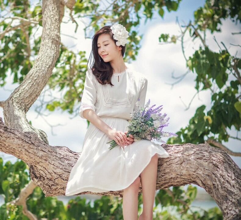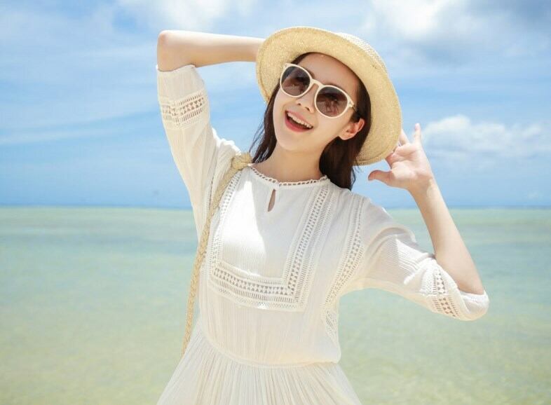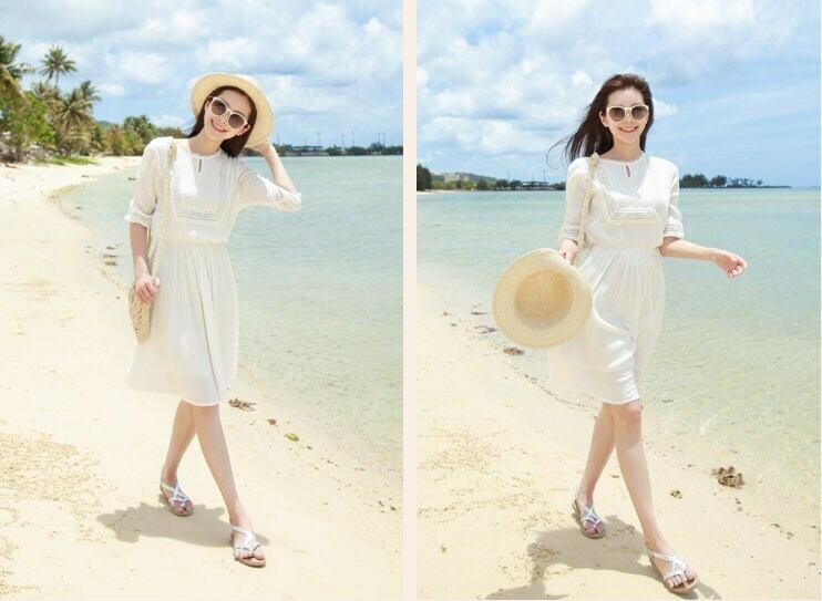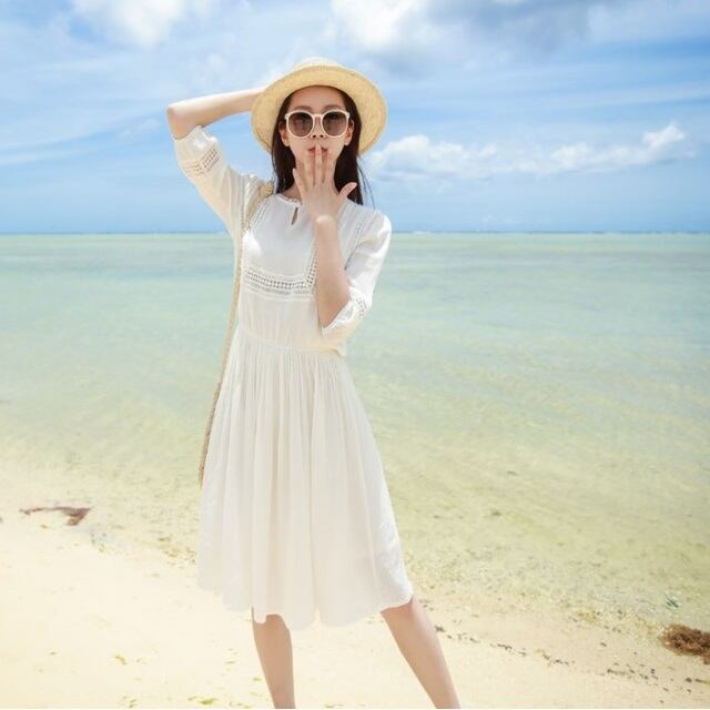 ワンピース シフォン ラウンドネック ミディアム丈 大スイングタイプ ビーチ ビーチウェア 海 海岸