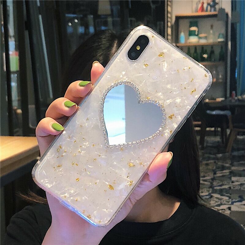 Iphone ケース カバー デザイン ミラー付 ハート デザイン かわいい RB-0909