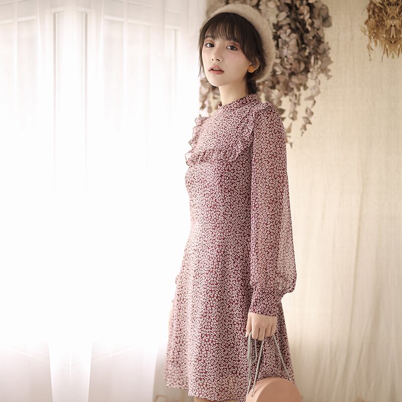 ワンピース 花柄 デザイン おしゃれ ハイネック デート オフィス シフォン RB-1362