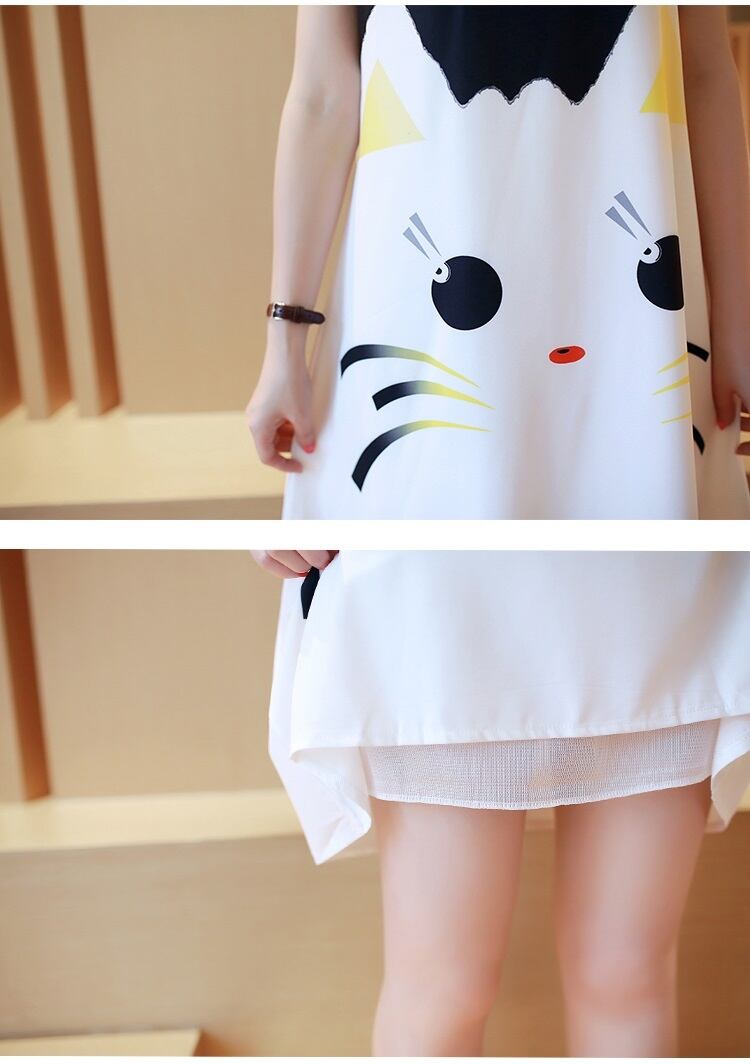 猫柄ワンピース ノースリーブ ショート丈 ゆったり マタニティ RB-2004-0060