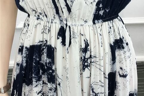 ノースリーブワンピース ロング丈 マキシ丈 ラウンドネック カジュアル ウエストゴム コットン RB-M06-0005