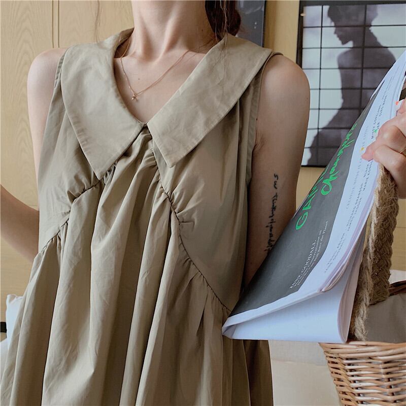 ノースリーブワンピース ひざ下 無地 シンプル カジュアル レトロ 大人 RB-M06-0007