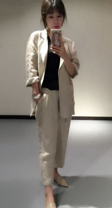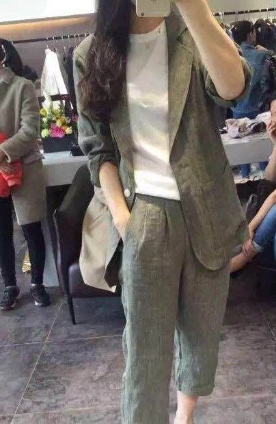 リネンパンツスーツ 2ピースセット ジャケット裾長め パンツ ゆったり メンズライク 大きいサイズあり RB-2004-0071