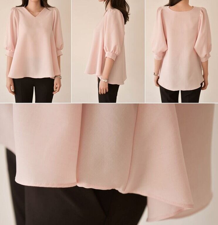 ブラウス Vネック 半袖 パフスリーブ Aライン 無地 ゆったり シンプル 上品 きれいめ フェミニン 通勤 オフィス お呼ばれ 春 夏 RB-A06-0014