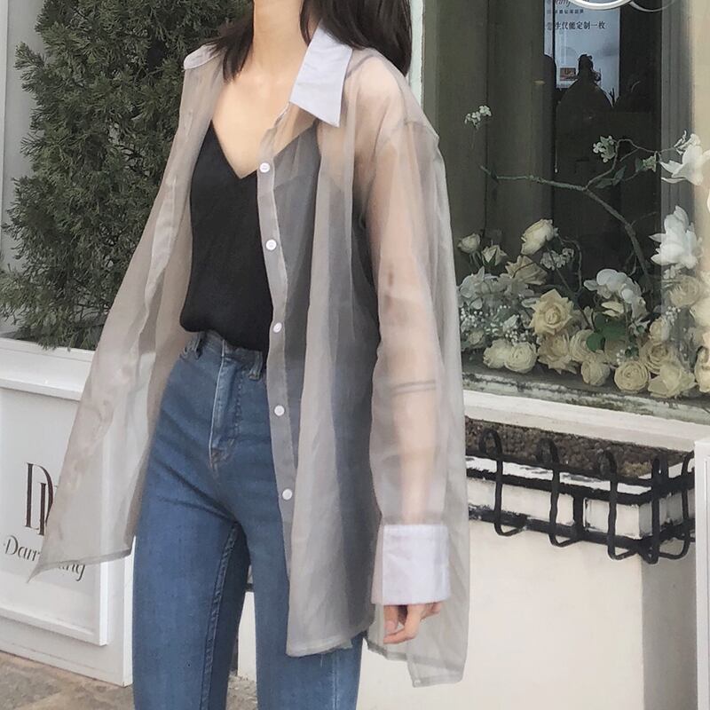 シャツ 長袖 シースルー シアー 透け感 無地 シャツジャケット 日焼け防止 紫外線対策 シンプル カジュアル はおり 春 夏 RB-A06-0016