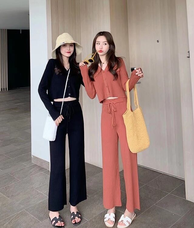 セットアップ リブニット 長袖 カーディガン パンツ ガーリー かわいい 春 夏 秋 RB-2004-0075