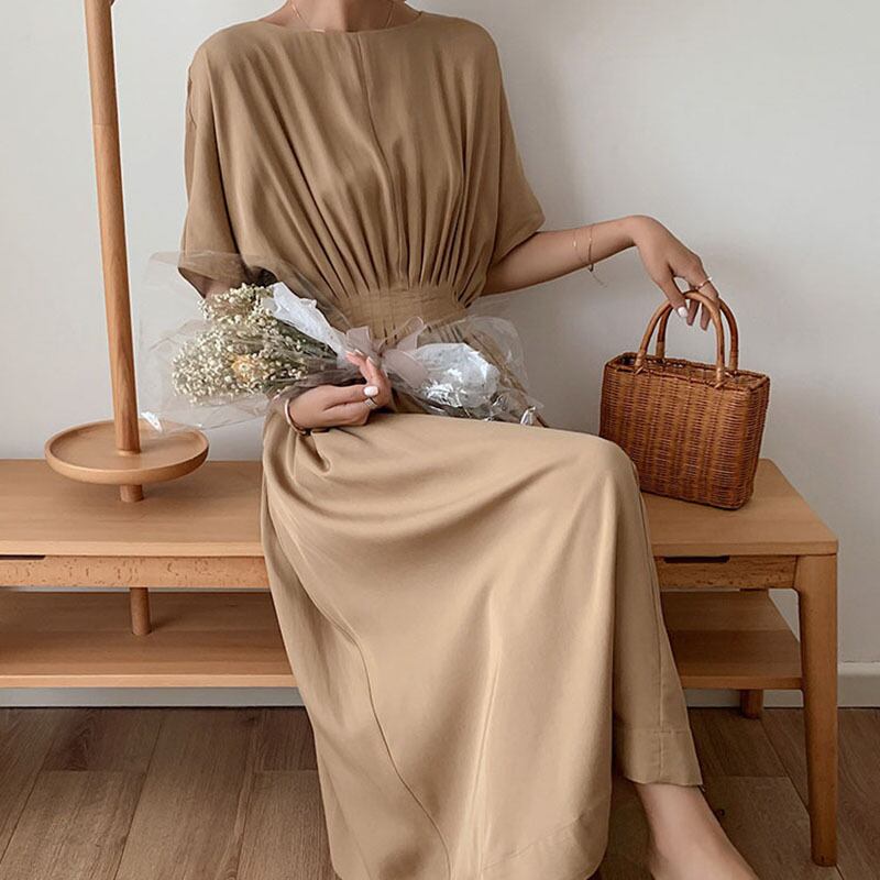 シンプル ウエストマーク ドレッシー 大人 マタニティ ワンピース マキシ丈 春夏 ギャザー RB-S06-0003
