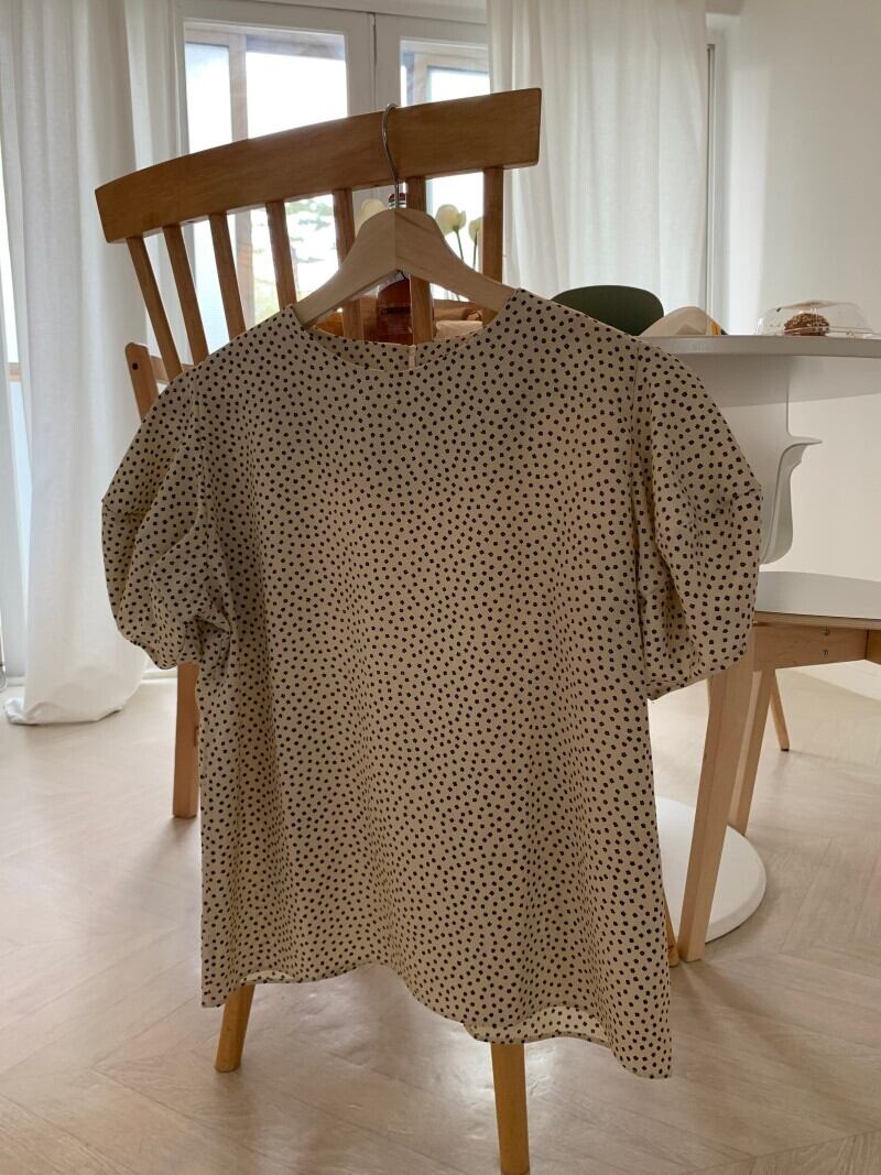 ブラウス 半袖 ドット風 小花柄 バブルスリーブ パフスリーブ ラウンドネック かわいい ガーリー sweet 大人女子 お出かけ デート 夏 RB-A06-0026