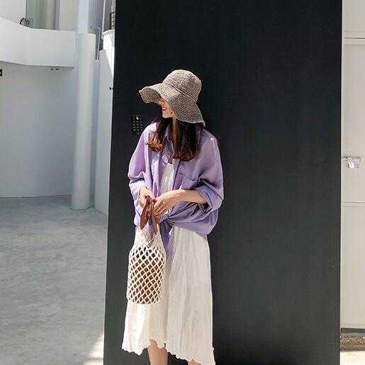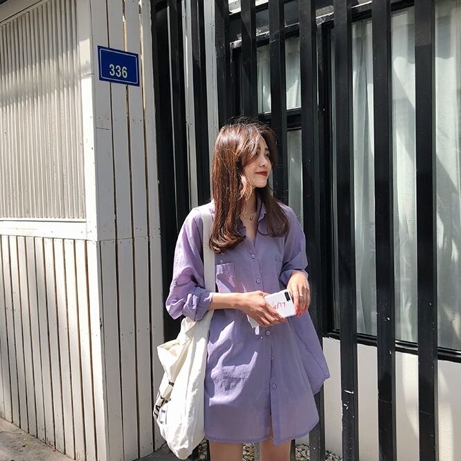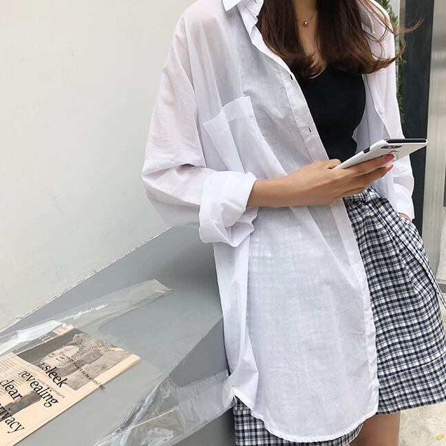 ロング シャツ 長袖 オーバーサイズ ルーズ ゆったり 無地 薄手 透け感 シアー カジュアル シンプル はおり 日焼け防止 紫外線カバー 体型カバー 春 夏 RB-A06-0036