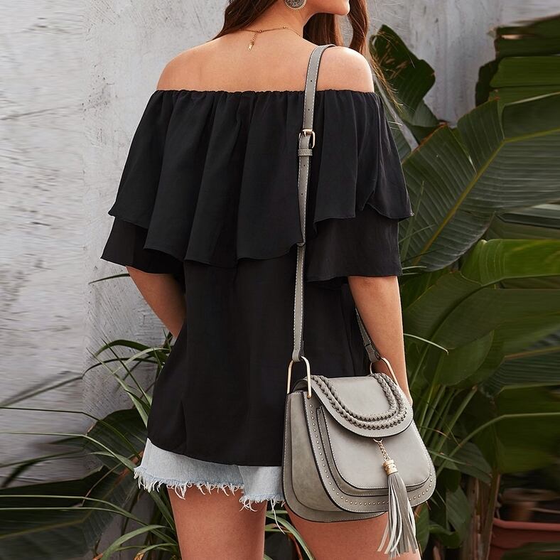 オフショル ブラウス ラッフル フリル 肩出し 肌見せ 無地 シンプル カジュアル セクシー 着回し お出かけ デート レジャー ビーチ リゾート 夏 RB-A06-0040