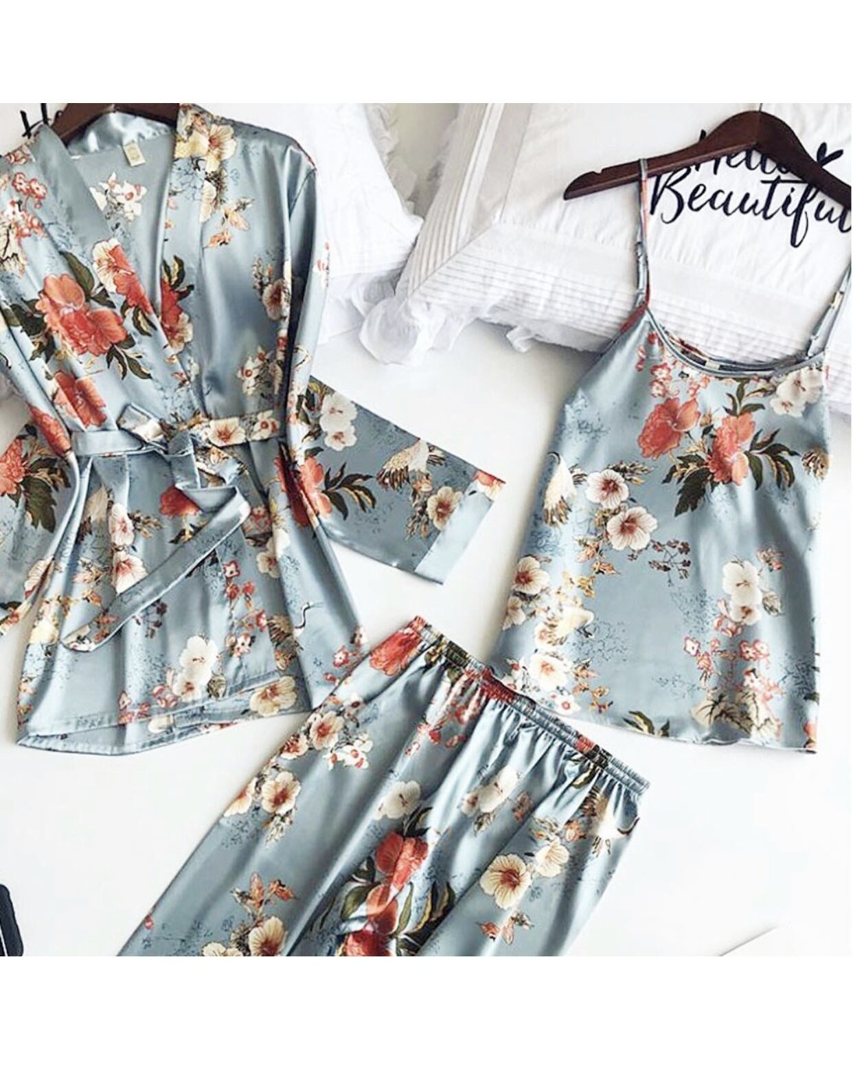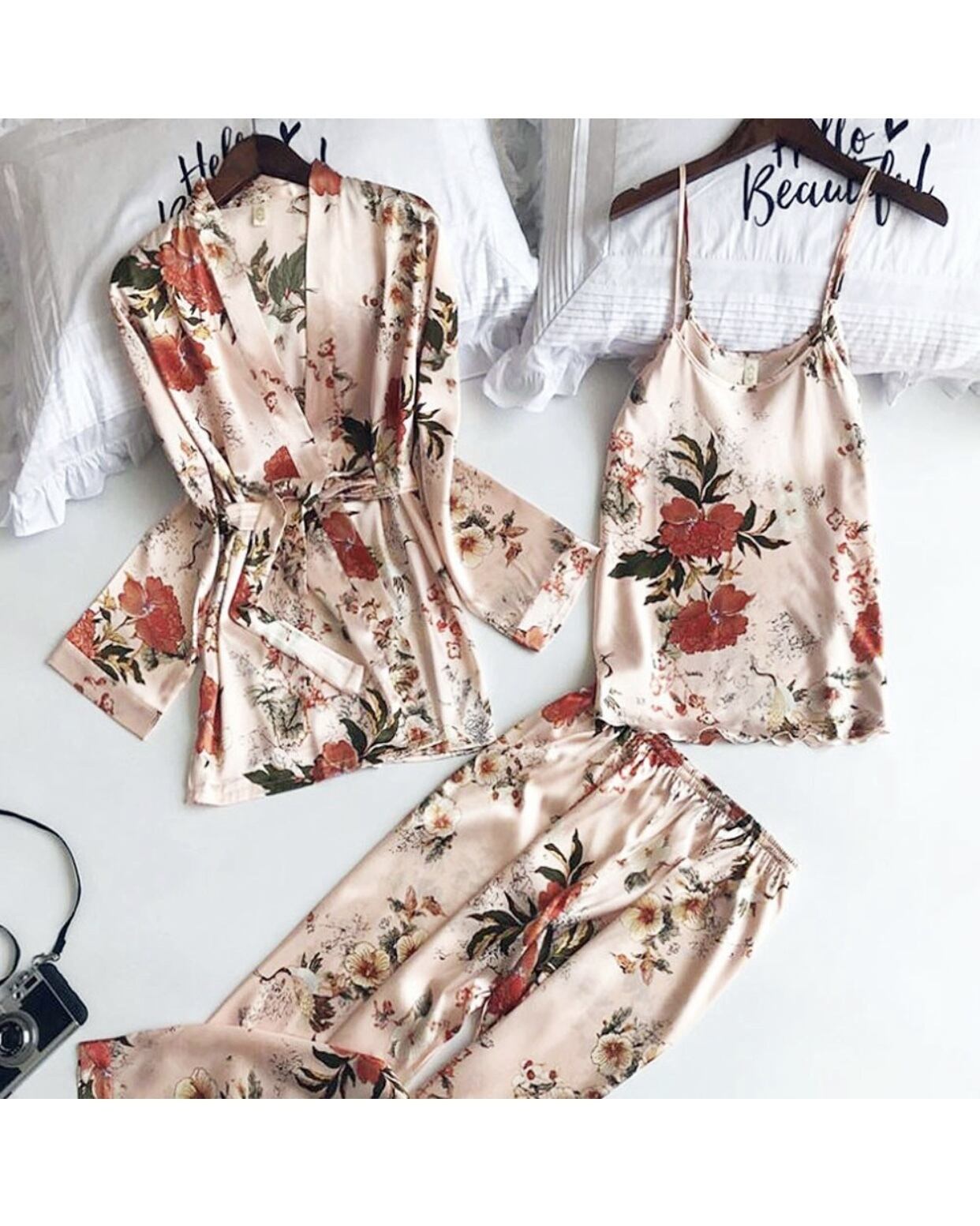☆フラワー3SET シルクパジャマセット ルームウェア RB-D06-0002