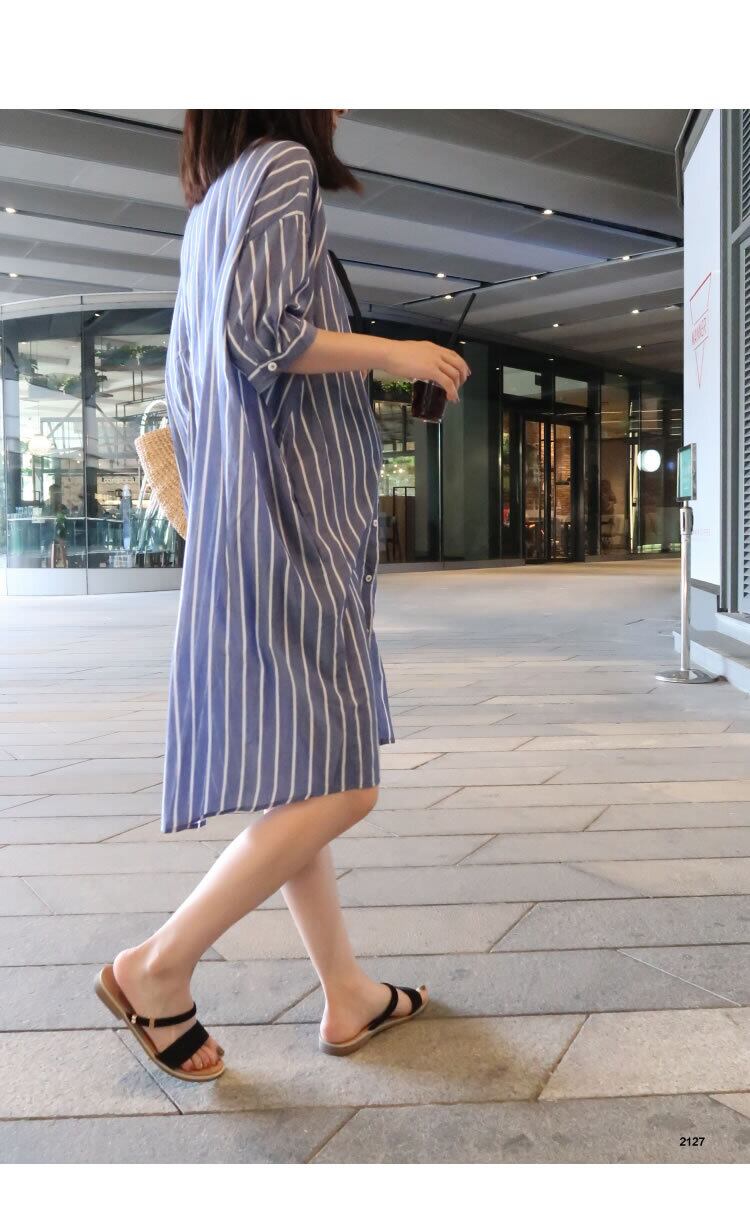 シャツワンピース ストライプ 半袖 5分袖 膝丈 ミドル丈 ゆったり マタニティ カジュアル 春 夏 RB-2004-0083