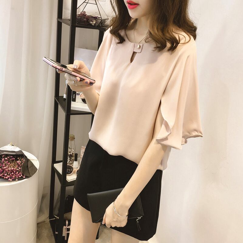 ブラウス 半袖 フレアスリーブ ラウンドネック 無地 二の腕カバー 上品 きれいめ 清楚 通勤 オフィス お出かけ 夏 RB-A06-0051