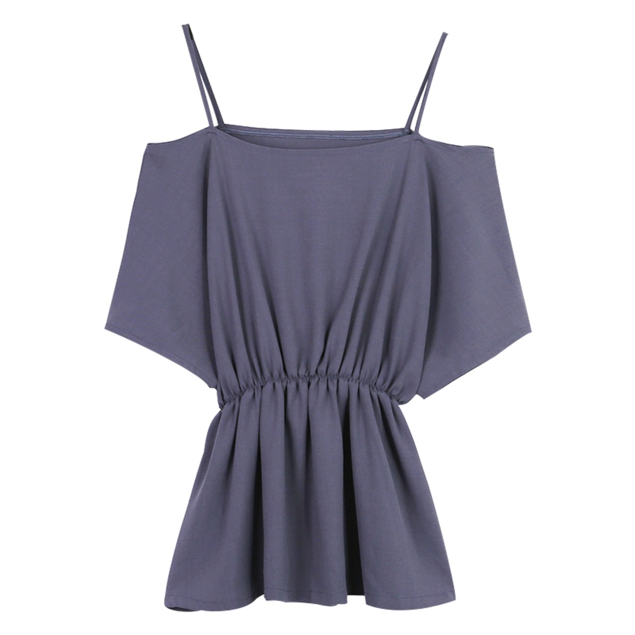 オフショルダー シャツ トップス ストラップ付 半袖 シフォン ウエストリボン付き ウエストゴム ウエストマーク 肩出し 肌見せ 無地 シンプル セクシー シック 大人かわいい お出かけ デート 夏 RB-A06-0058