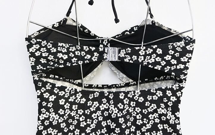 水着 モノキニ ワンピース オールインワン ホルターネック 小花柄 体型カバー モノトーン レトロ ガーリー フェミニン 夏 ビーチ 海 プール リゾート RB-I06-0011