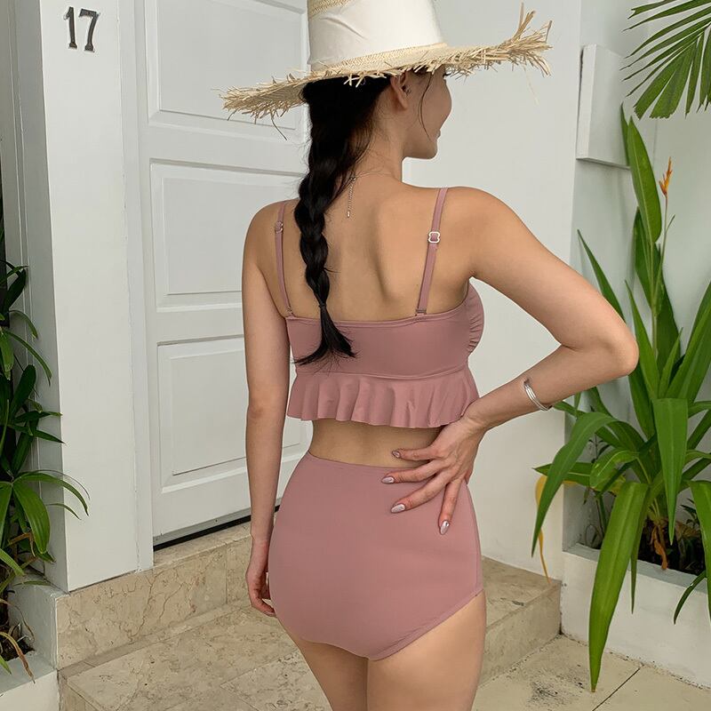 水着 ビキニ ビスチェ フリル ハイウエスト 体型カバー 無地 ピンク ブラック ガーリー フェミニン きれいめ シンプル 夏 ビーチ 海 プール リゾート RB-I06-0020