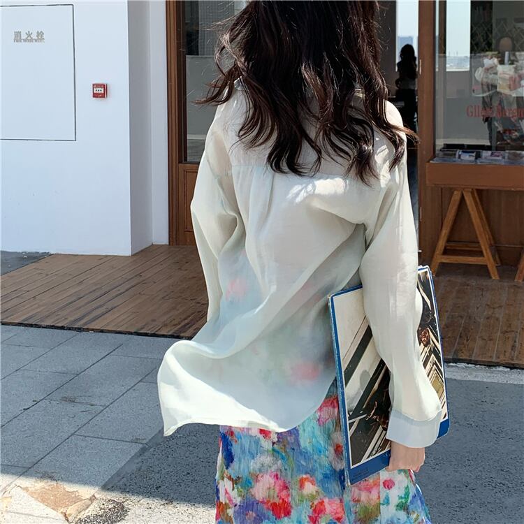 シャツ 長袖 シースルー シアー 透け感 紫外線防止 日焼け防止 無地 カジュアル シンプル トレンド トップス 羽織 春 夏 RB-A06-0086