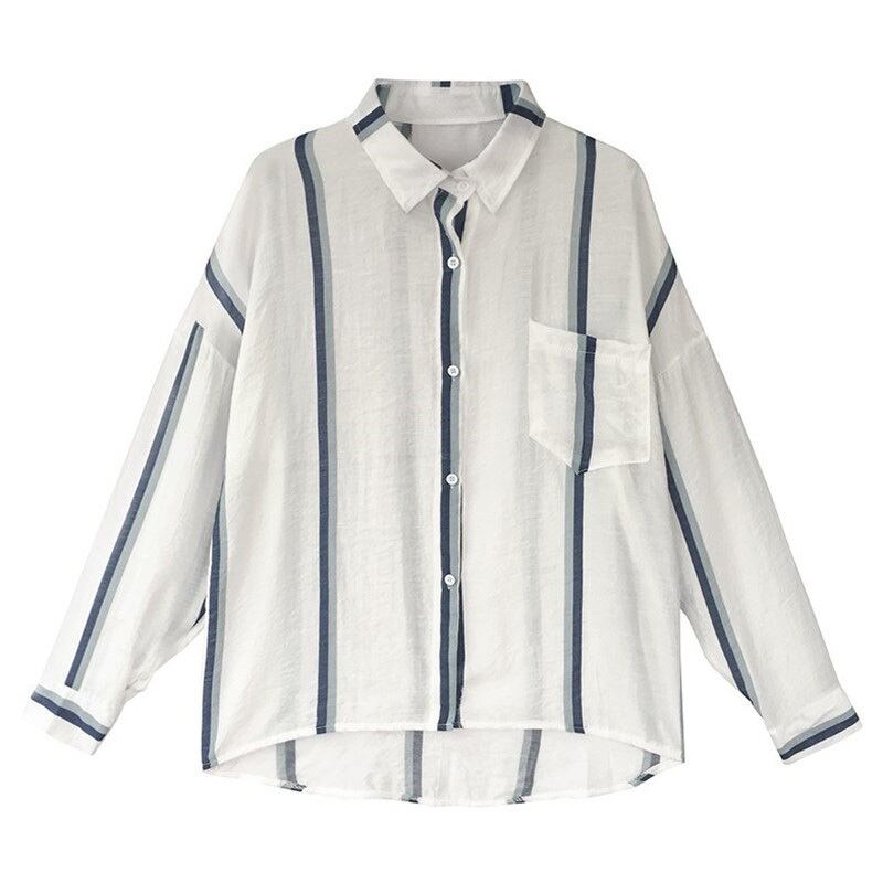 シャツ ストライプ柄 長袖 シフォン 薄手 透け感 日焼け防止 紫外線カバー 冷房対策 シアー トップス カジュアル ラフ リラックス デイリー 通勤 オフィス 春 夏 RB-A06-0087