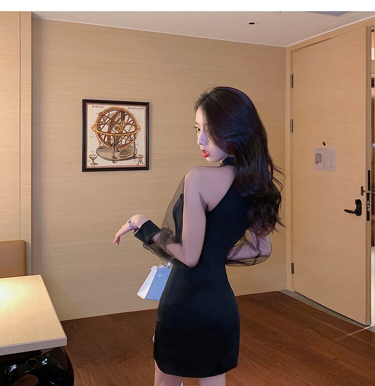 シースルーワンピース ドレス ホルダーネック フロントカット ミニ丈 ペンシルスカート セクシー 大人 スリム RB-2004-0091