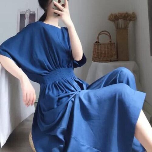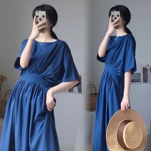 ワンピース ラウンドネック 5分丈 ロング丈ゆったり カジュアル 無地 シンプル 大人 RB-M06-0068