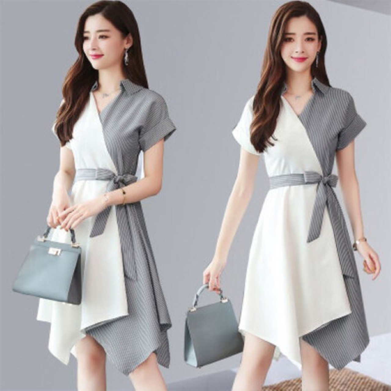 ワンピース ひざ丈 半袖 ウエスト リボン 大人 カジュアル キレイめ フレア 大きめサイズ ゆったり RB-M06-0071
