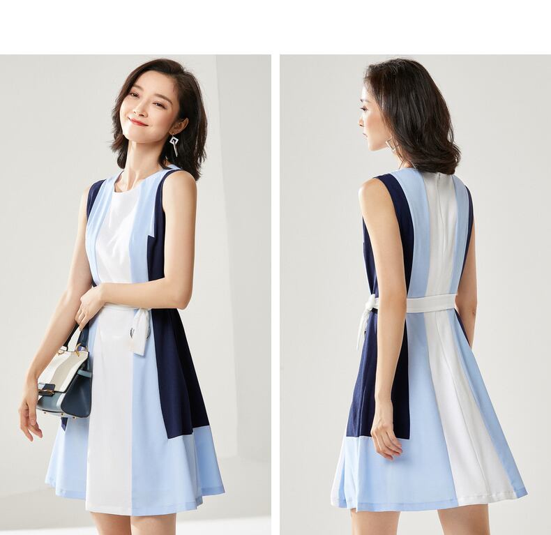 ワンピース ノースリーブ ラウンドネック ひざ上 ミニ ショート オシャレ ベルト付き 大人 きれい RB-M06-0076