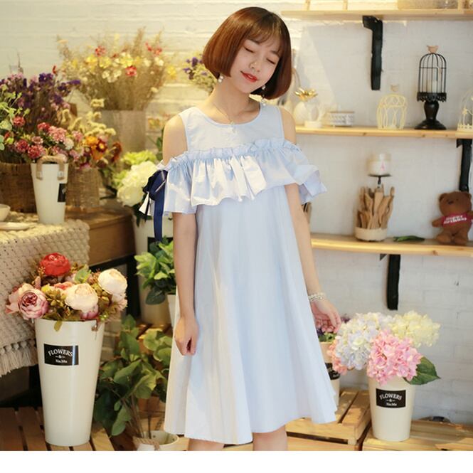 ワンピース マタニティ オフショルダー サイドリボン フリル ガーリー 大人 可愛い ゆったり 体型カバー RB-M06-0080