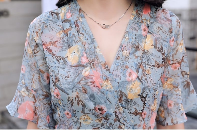ワンピース ひざ下 ひざ丈 半袖 Vネック 花柄 小花柄 大人 可愛い シフォン デート お出かけ 大きいサイズ RB-M06-0083