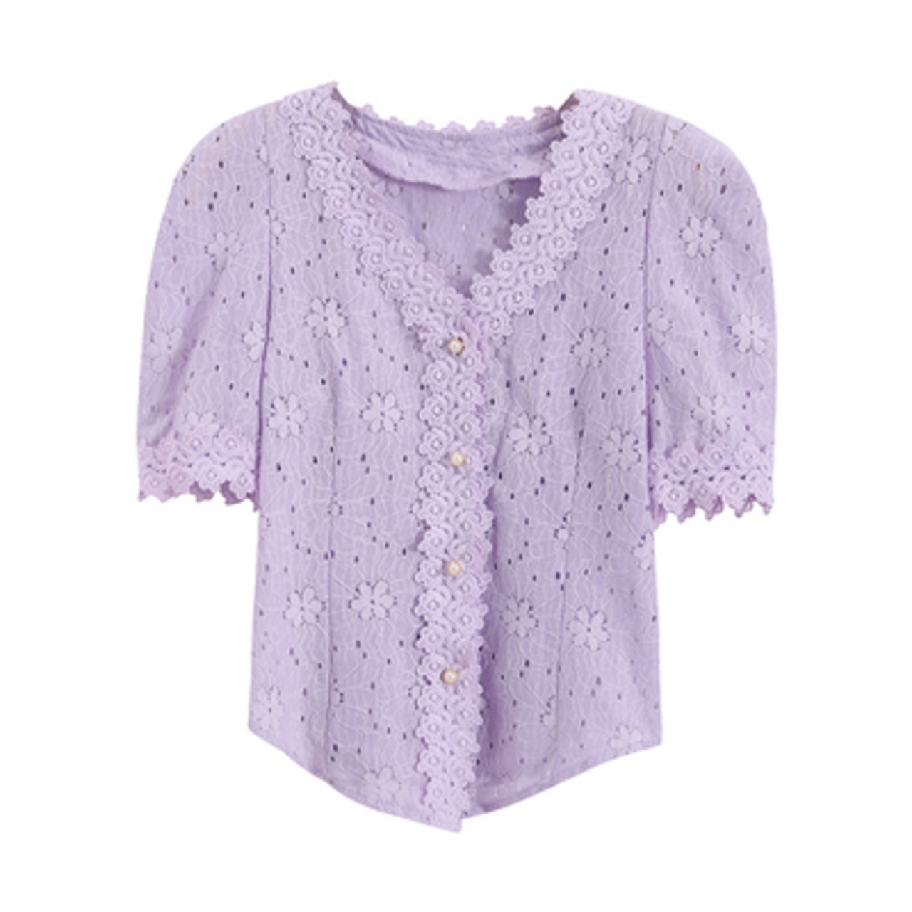 ブラウス 総レース 飾りレース 半袖 Vネック パフスリーブ フェミニン 清楚 上品 きれいめ ガーリー お出かけ デート 通勤 春 夏 RB-A06-0098