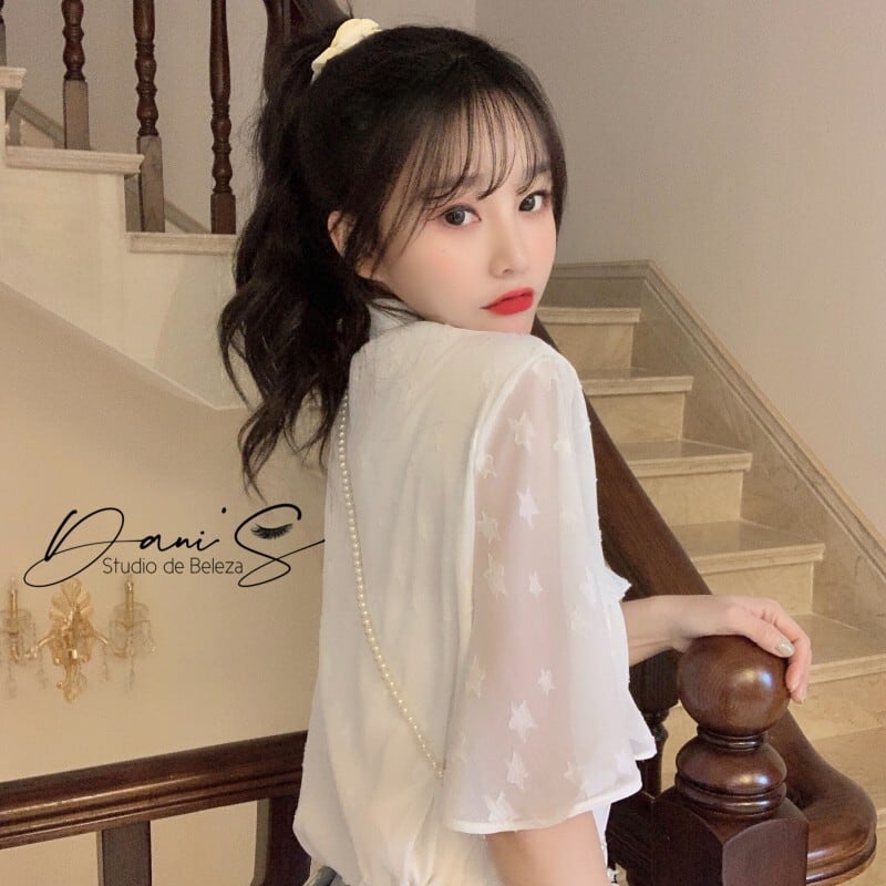 ブラウス シャツ トップス 半袖 フレアスリーブ シャーリング ギャザー 透け感 シアー レトロ かわいい ガーリー 清楚 お出かけ 普段使い デート 春 夏 RB-A06-0106