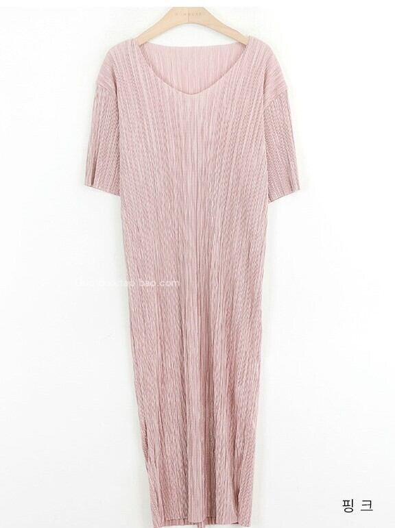 プリーツ ワンピース マタニティ ドレッシー シンプル ゆったり 産前産後 ひざ下 ミモレ丈 春夏 半袖 RB-S06-0022
