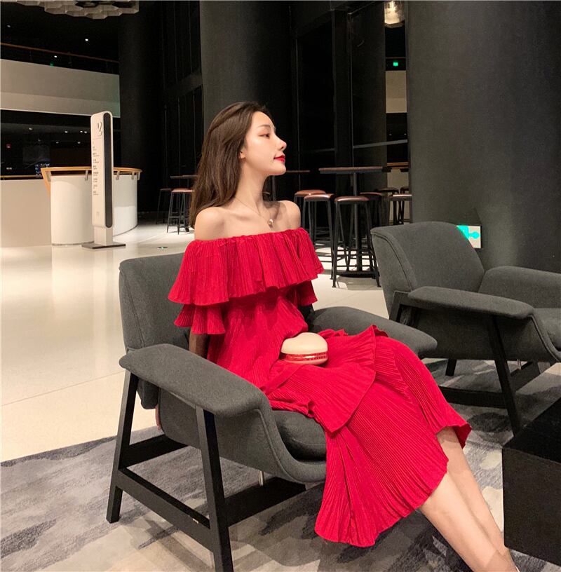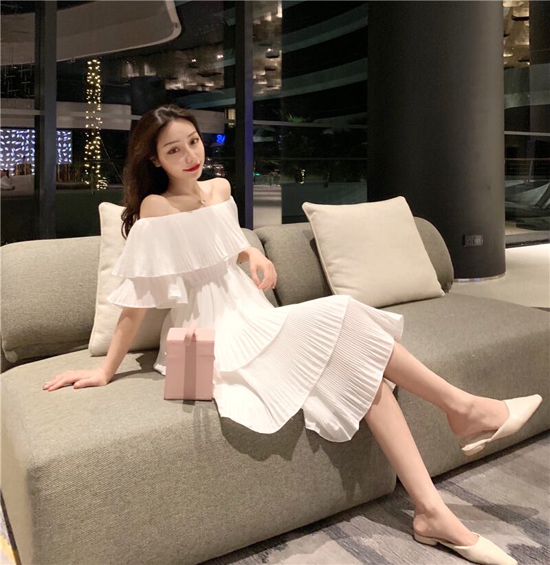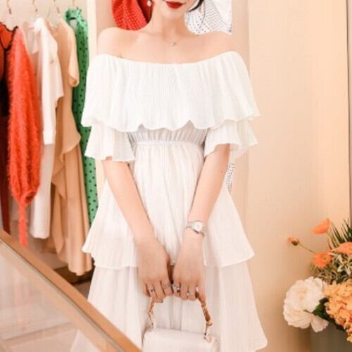 ワンピース ティアード フリル オフショルダー 半袖 ひざ丈 シフォン 大人 きれい パーティー 無地 RB-M06-0095