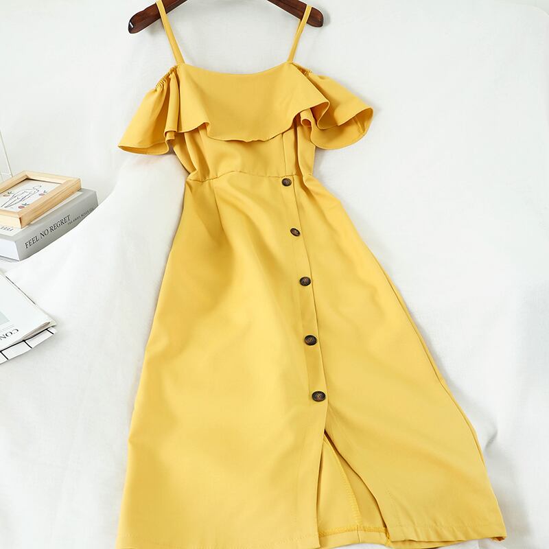 キャミソールワンピース オフショル ひざ丈 フリル スリット セクシー 大人 無地 RB-M06-0096