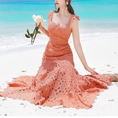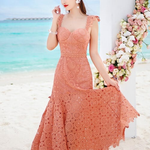 キャミソールワンピース ひざ丈 アシンメトリー 刺繍 レース フェミニン きれい オシャレ パーティ リゾート RB-M06-0099