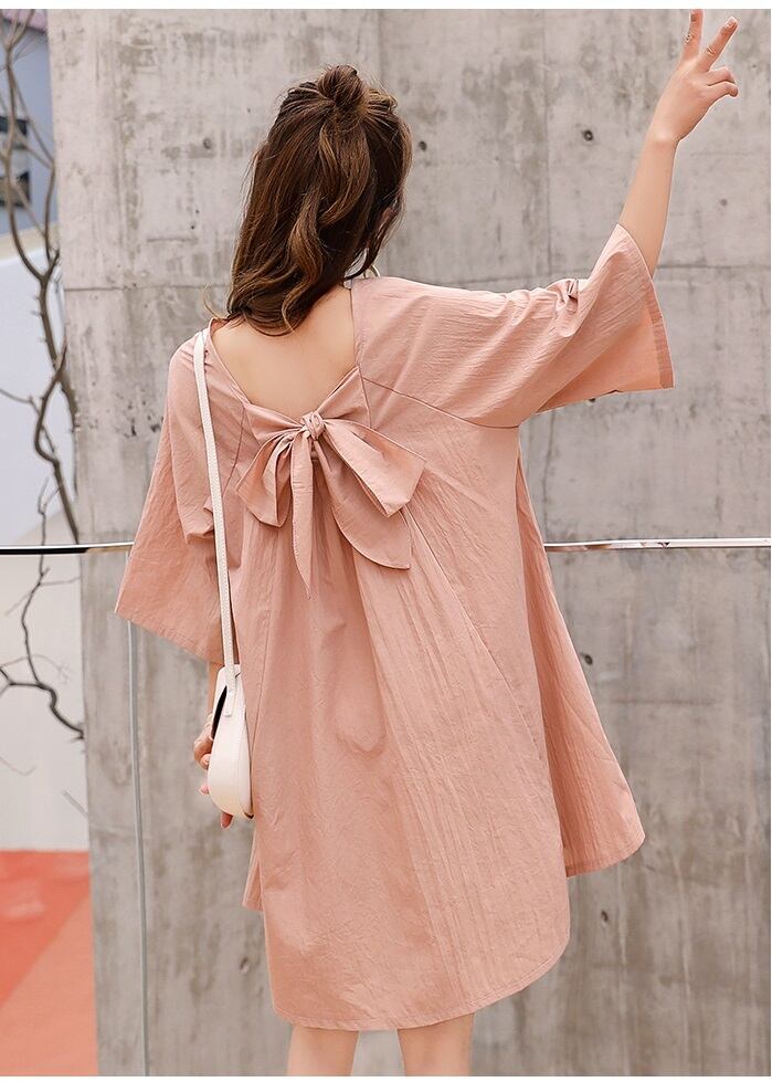 ワンピース バックリボン 半袖 5分袖 ひざ上 ショート丈 無地 シンプル 大きいサイズ マタニティ 春 夏 RB-2004-0111