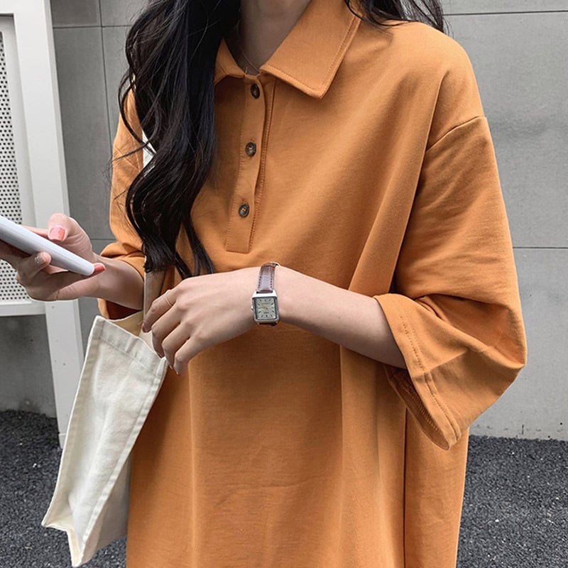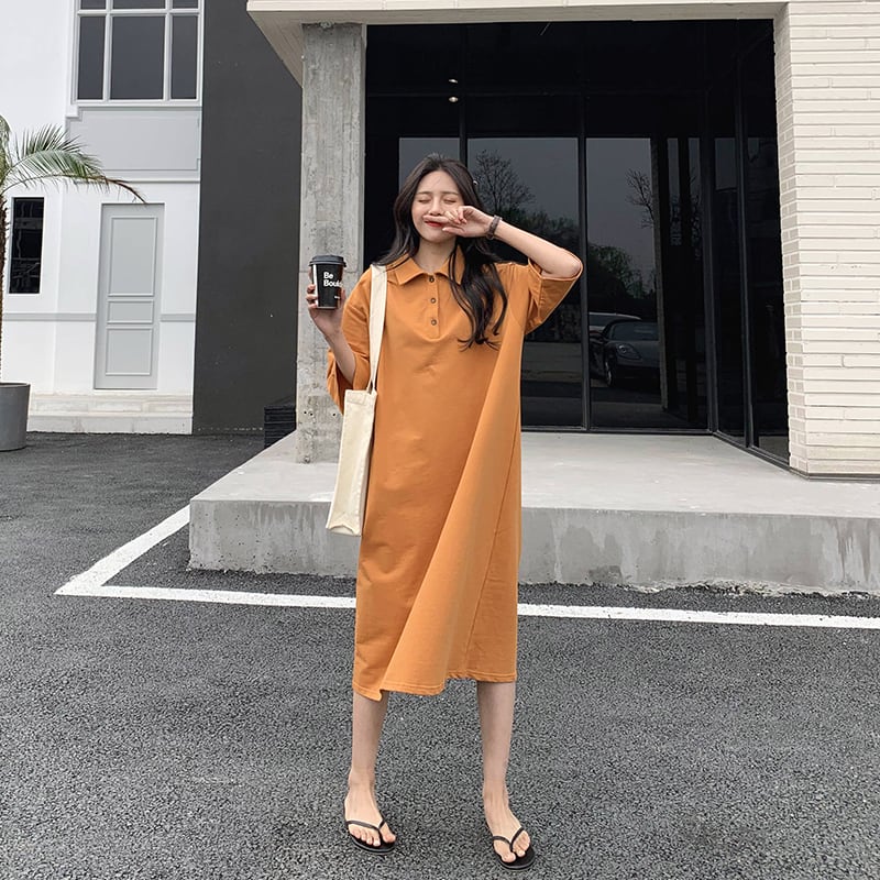 シャツワンピース 7分袖 半袖 ひざ下 ミドル丈 カジュアル 無地 シンプル ゆったり 大きいサイズ マタニティ 春 夏 RB-2004-0114