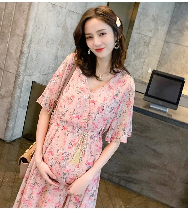 シフォンワンピース 2ピースセット 花柄 Vネック 半袖 5分袖 ロング丈 ガーリー 上品 ゆったり マタニティ RB-2004-0118