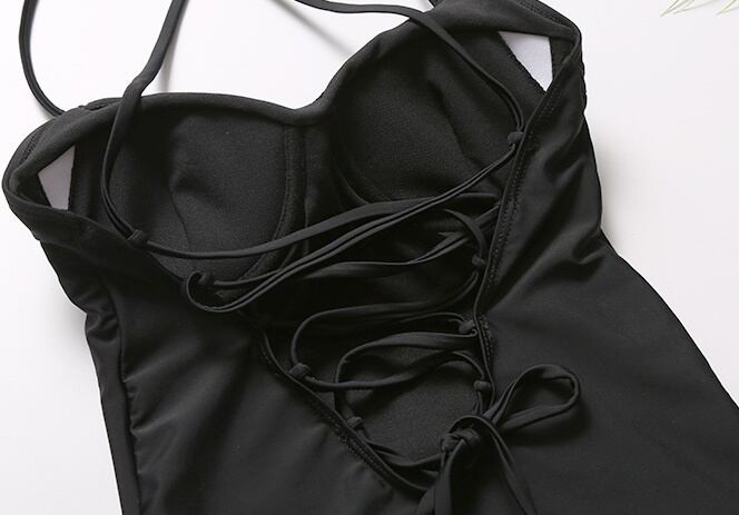 水着 ワンピース オールインワン モノキニ バッククロス レースアップ 体型カバー 無地 ブルー ブラック シンプル きれいめ 上品 セクシー 夏 ビーチ 海 プール リゾート RB-I06-0066