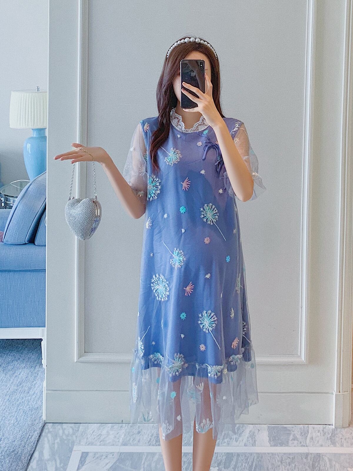 マタニティ ワンピース レース デザイン おしゃれ 春夏 半袖 RB-H06-058