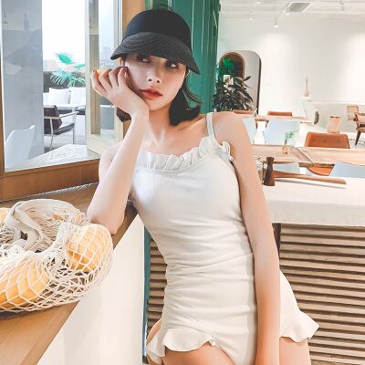 水着 ワンピース オールインワン モノキニ オープンバック フリル 体型カバー 無地 ホワイト グリーン レトロ ガーリー フェミニン きれいめ 夏 ビーチ 海 プール リゾート RB-I06-0077