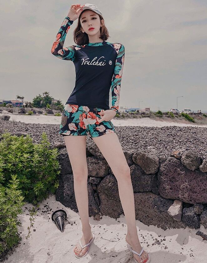 水着 セパレート ラッシュガード 長袖 トロピカル柄 体型カバー 日焼け対策 カジュアル スポーティー 夏 ビーチ 海 プール リゾート マリンスポーツ フィットネス RB-I06-0090