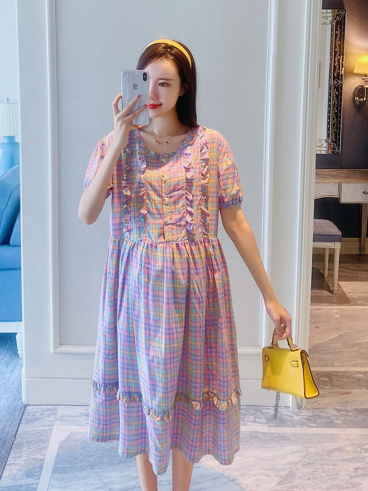 マタニティ ワンピース チェック フリル デザイン かわいい ゆったり RB-H06-0099