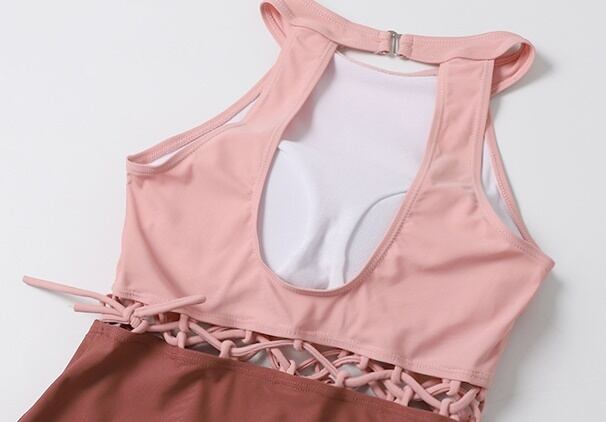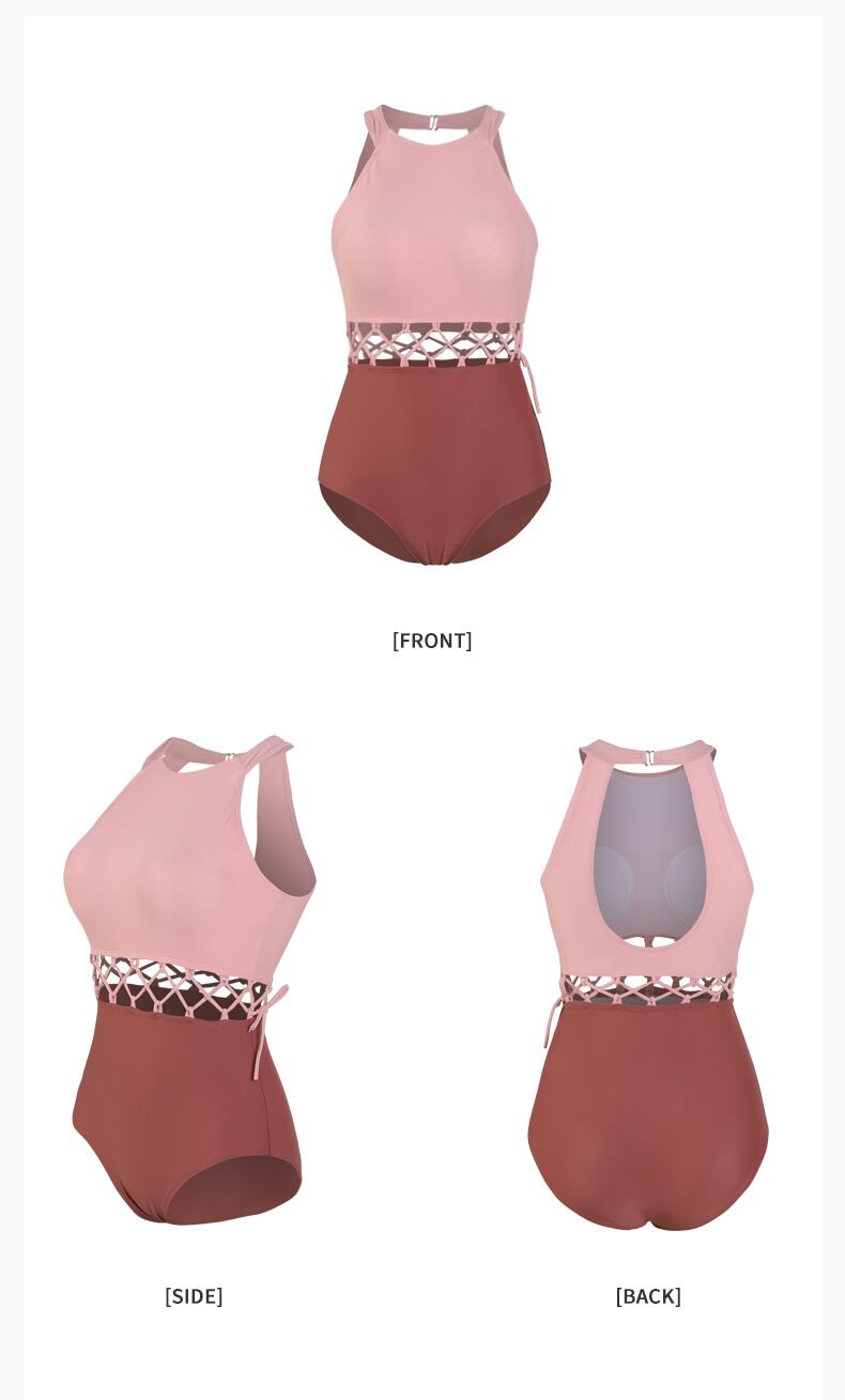 水着 ワンピース オールインワン モノキニ ホルターネック オープンバック ハイウエスト 体型カバー バイカラーレトロ ガーリー フェミニン きれいめ 夏 ビーチ 海 プール リゾート RB-I06-0106