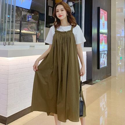 韓国風 マタニティ ワンピース ゆったり キャミソール ロング丈 マキシ丈 カジュアル シンプル 無地 RB-S06-0090