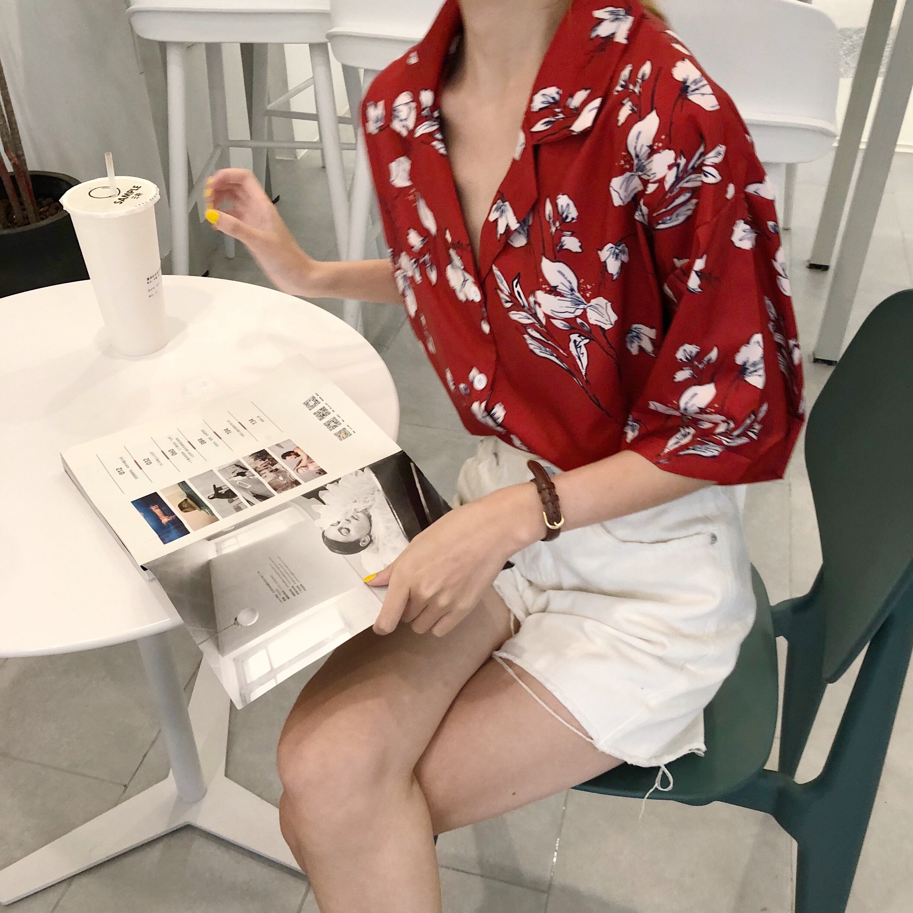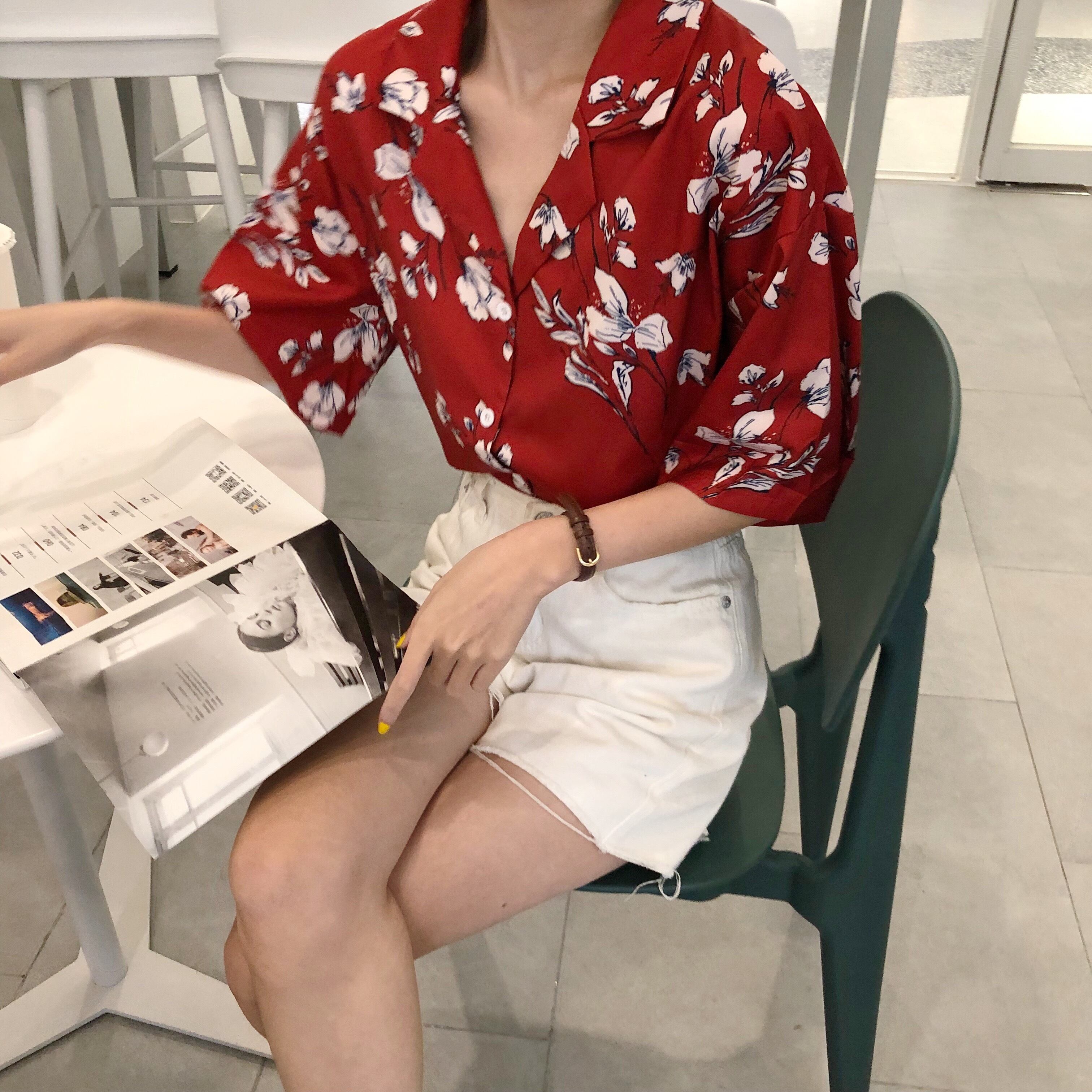 小花柄のトップス 花柄 レトロ 半袖 シャツ 開襟 オープンカラー シック フラワー 大人カジュアル こなれ感 夏 RB-A07-0003