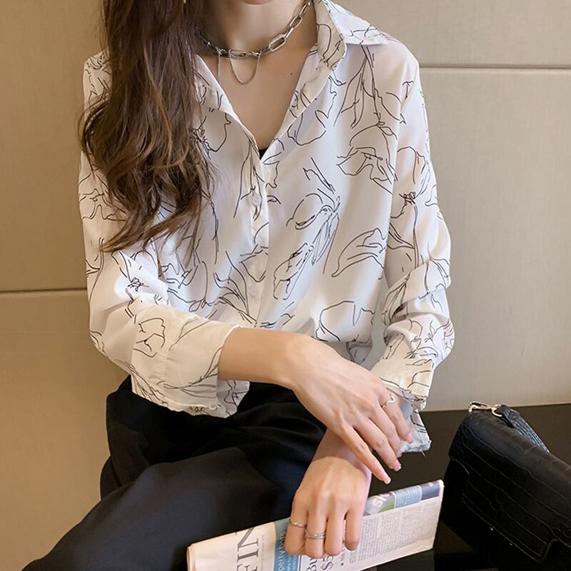 小花柄のトップス 花柄 レトロ フローラル シフォン ブラウス シャツ 長袖 手書き風 総柄 落ち感 羽織 大人カジュアル シック モダン RB-A07-0026