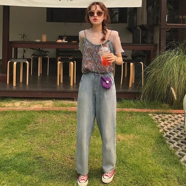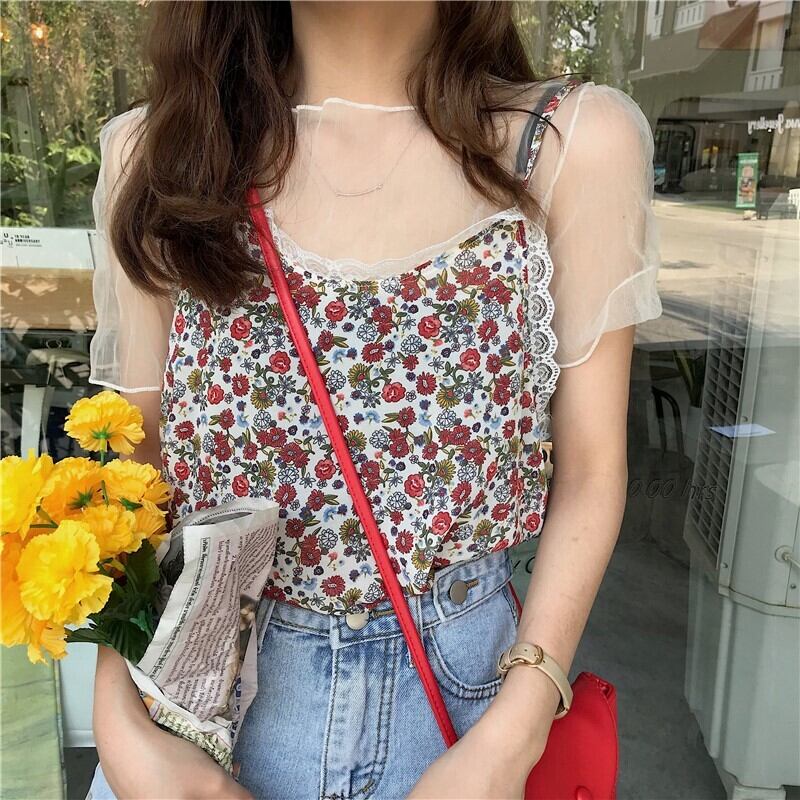 小花柄のトップス 花柄 レトロ セットアップ キャミソール シースルー Tシャツ レイヤード 重ね着 トレンド ガーリー かわいい 着回し 夏 RB-A07-0040