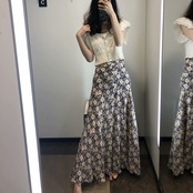 韓国風 小花柄のスカート スカート 花柄 レトロ フレア Aライン ロング丈 マキシ丈 ガーリー RB-S07-0004